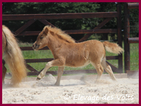 Très jolie pouliche au caractère très proche de l'homme et facile. Elle possède un excellent modèle : une jolie tête, une encolure très bien orientée, un dos tonique, une croupe large et bien arrondie avec une très bonne épaule et des articulations solides. Elle a également une excellente locomotion.
