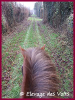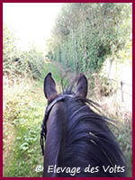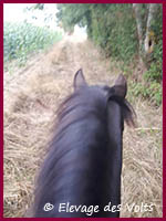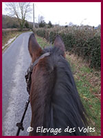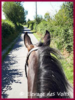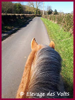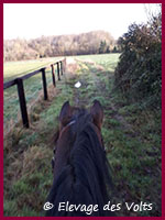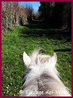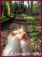 12 avril Pour sa 4e séance montée, nous sortons en extérieur avec FETICHE des CLES. Il est incroyable de confiance, de sérénité et de la vitesse à laquelle il apprend. |