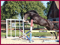 HURRICANE de MASSALIA découvre lui aussi ses premières barres. Très à l’aise, il se dévoile un peu plus après chaque saut. HURRICANE est à vendre, possibilité de le castrer avant son départ. |