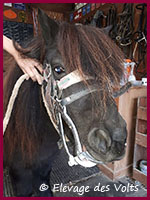 7 mai Malgré les kilomètres, GENIE du HALAGE, femelle Dartmoor de 3 ans appartenant à l’élevage du HALAGE, nous a rejoint aujourd’hui pour son débourrage. |