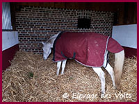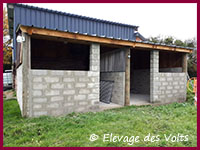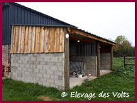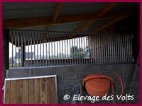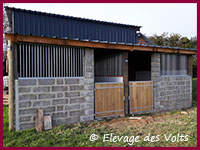 Ca y est, après plusieurs mois de travaux, les nouveaux boxes sont enfin en service ! S’ajoutent donc 2 boxes de poulinage spacieux, 3.50 m x 4.50m, lumineux, avec vidéo surveillance et lampe chauffante (au cas où). Un immense à Frédéric, Christophe et mes parents pour leurs précieux coups de main et qui m’ont permis ainsi de finaliser ce projet. |