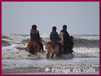 23 décembre Dernière sortie plage de l’année. L’occasion d’y emmener nos deux ponettes confiées pour leur débourrage, CORYPHEE de CABUE et EROINE de CABUE et FILLY SWEET des VOLTS. |