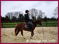 14 mars SEAVIEW ARIMIST nous arrive tout droit de la Belgique pour son débourrage. Jument Welsh A de 8 ans par MOORCOCK XAN et SEAVIEW STARLIGHT par DYFED CRACKERJACK. |