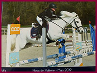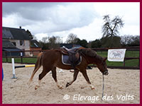15 avril VLAGADA des VOLTS (par OASIS des CLES et LEIRIA de la CLAIRIERE, propriété Céline GUESNET) est de retour à la maison pour le temps des vacances afin que Charlotte puisse le travailler en carrière et aussi peaufiner sa ligne avant les beaux jours. |