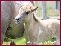 9 mai Un nouveau petit « marcassin » a vu le jour tôt ce matin à 3h ! DECIBELLE des VOLTS et TONGA de CABUE, avec 6 petits jours d’avance, nous offrent une belle, grande et osseuse pouliche. |