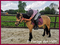 Première séance pour DE LAYKA v.d BUITENWEG montée par un petit cavalier depuis sa remise au travail chez nous. DE LAYKA est une adorable ponette ultra sûre et gentille. |