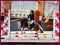7 décembre Premier enchainement pour le beau BACKWELL du SANON. Il était déjà époustouflant en début de travail, mais, au fil des séances, il prend encore plus de hauteur et de technique. Je n’ai jamais vu un Shetland avec autant de frappe, de force et de style sur les barres. Et sur le plat, idem un vrai petit bijou ! |