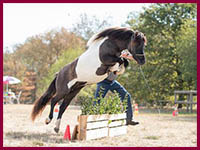 10 avril FETICHE des CLES, pour sa deuxième séance de sauts en liberté se dévoile un peu plus. Vraiment une bouille à bisous et avec un super caractère. Merci à Chloé BISSON pour les photos |