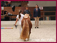 HISA’BELLA des VOLTS - 5e Très Prometteur dans la section des pouliches de 2 ans grande taille CHELSEA ICE des VOLTS - 4e Excellent dans la section des juments 4 ans et plus grande taille suitée. Sa pouliche JUST’ICE des VOLTS a beaucoup plu aux juges qui ont longuement hésité à la sélectionner (en photo) |